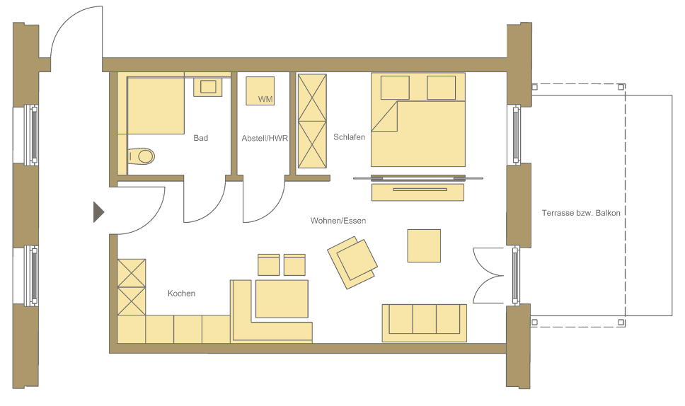 - Terrasse oder Balkon, Einbauküche inklusive
